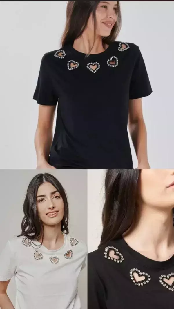 Remera importada de algodón con elastano y cristales en el escote